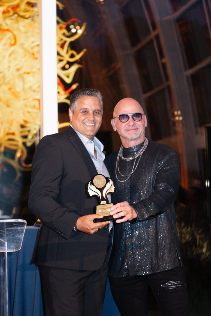 Salon stylist of the year, Omar Aguila, with award presenter Van Council, co-founder of Van Michael Salon