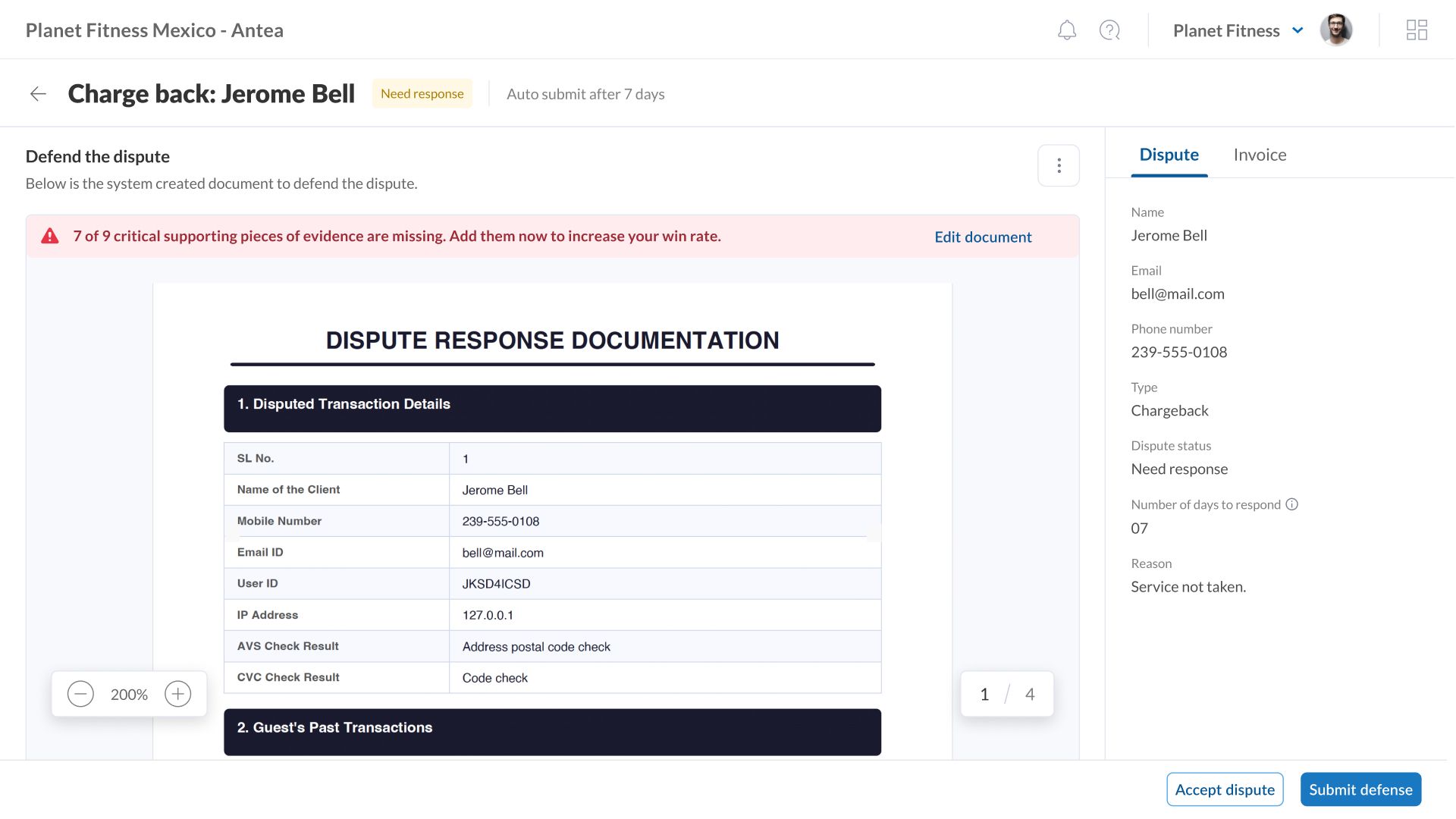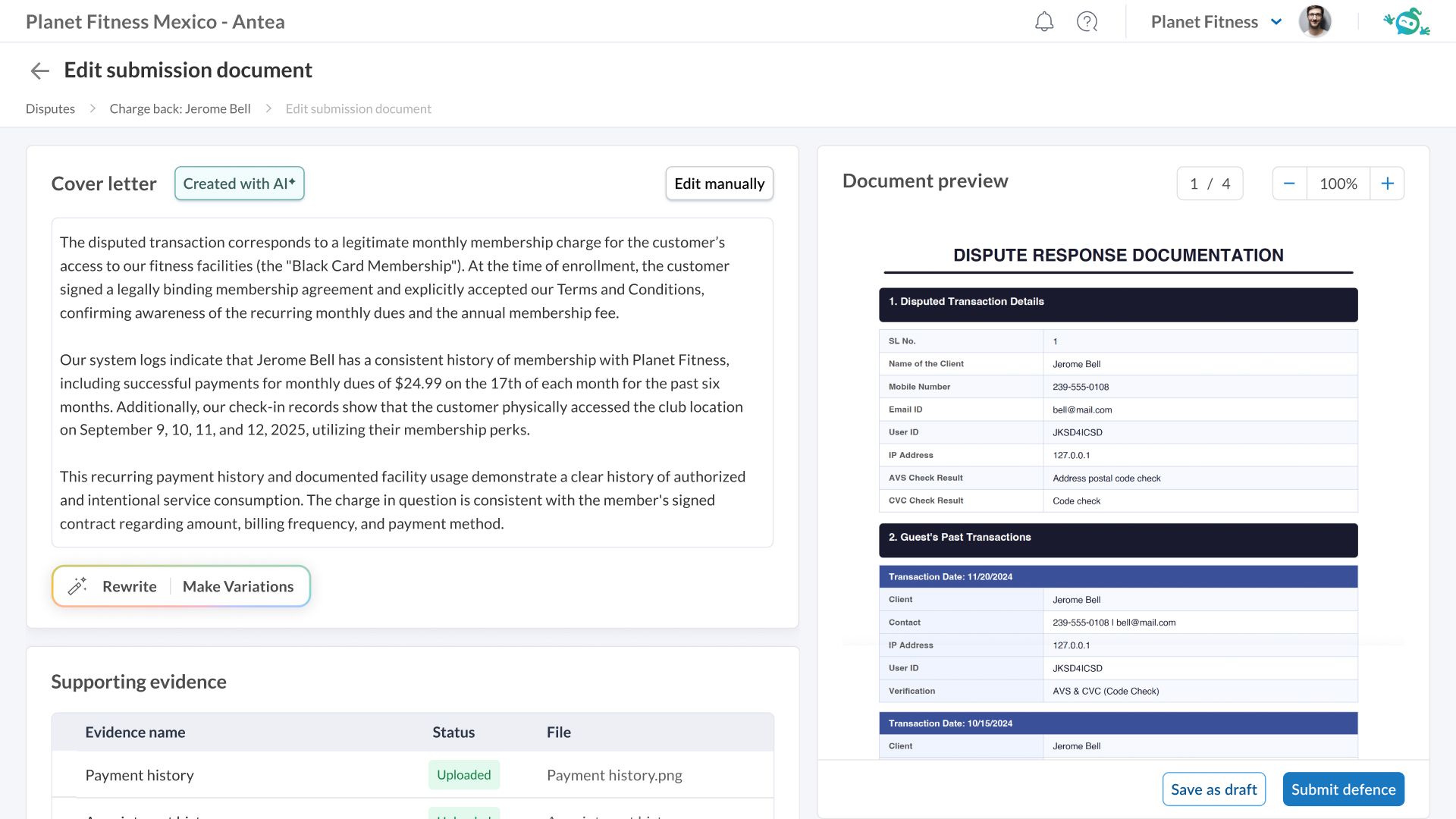 AI Dispute Manager se encarga de todo el proceso de resolución de disputas para que tu equipo no tenga que hacerlo.