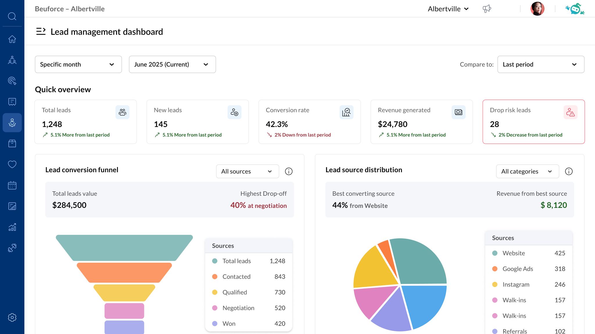 - Seguimiento del rendimiento en tiempo real: consulta paneles de control en directo, la actividad de los clientes potenciales y el rendimiento de las conversiones de todo tu equipo
