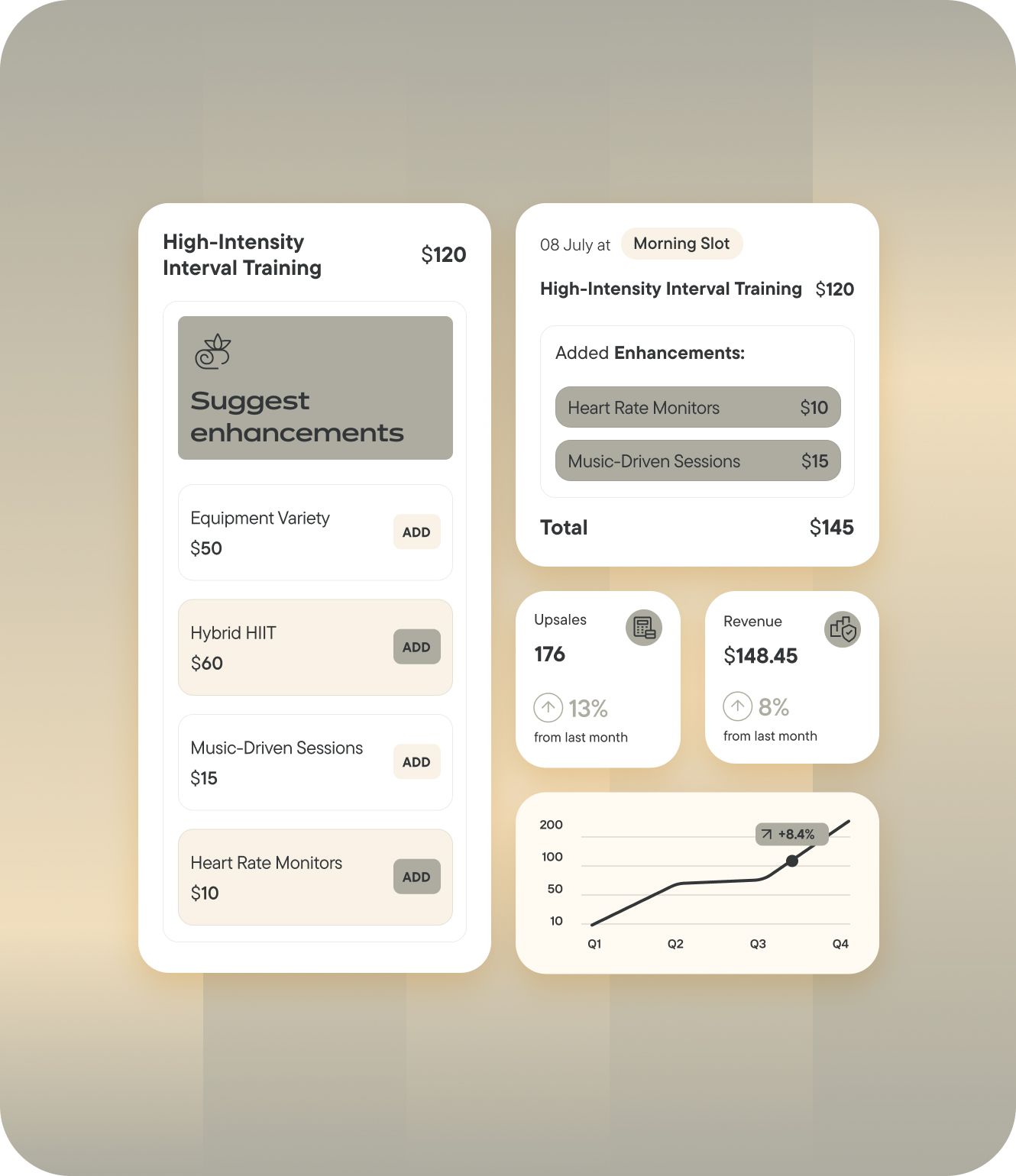 Show personalized upgrade options (PT packs, locker rentals, nutrition consults) at the right time to increase revenue per-member.