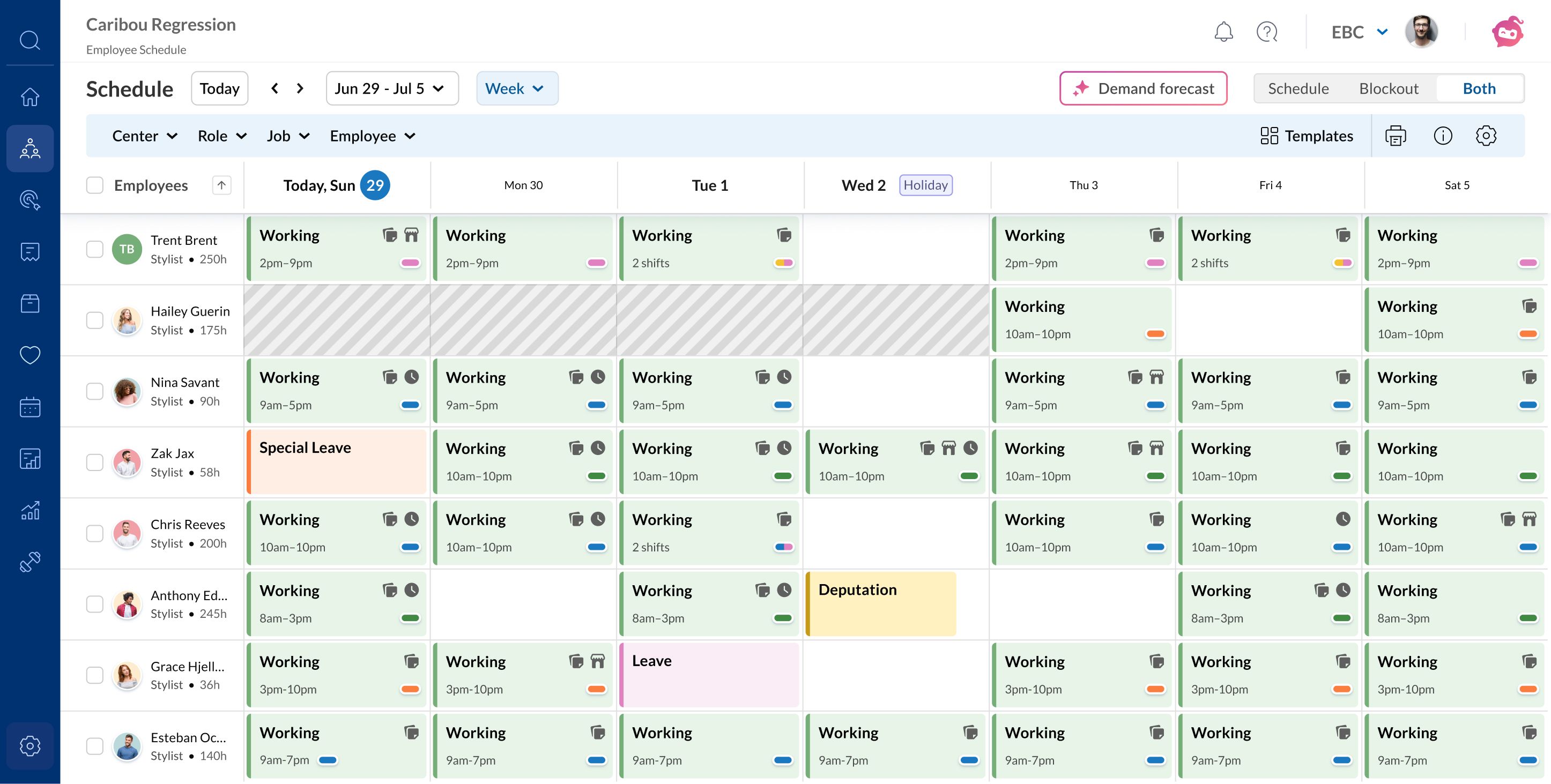 From demand prediction to published roster, from a single location to your entire chain, the full scheduling loop runs inside one platform.