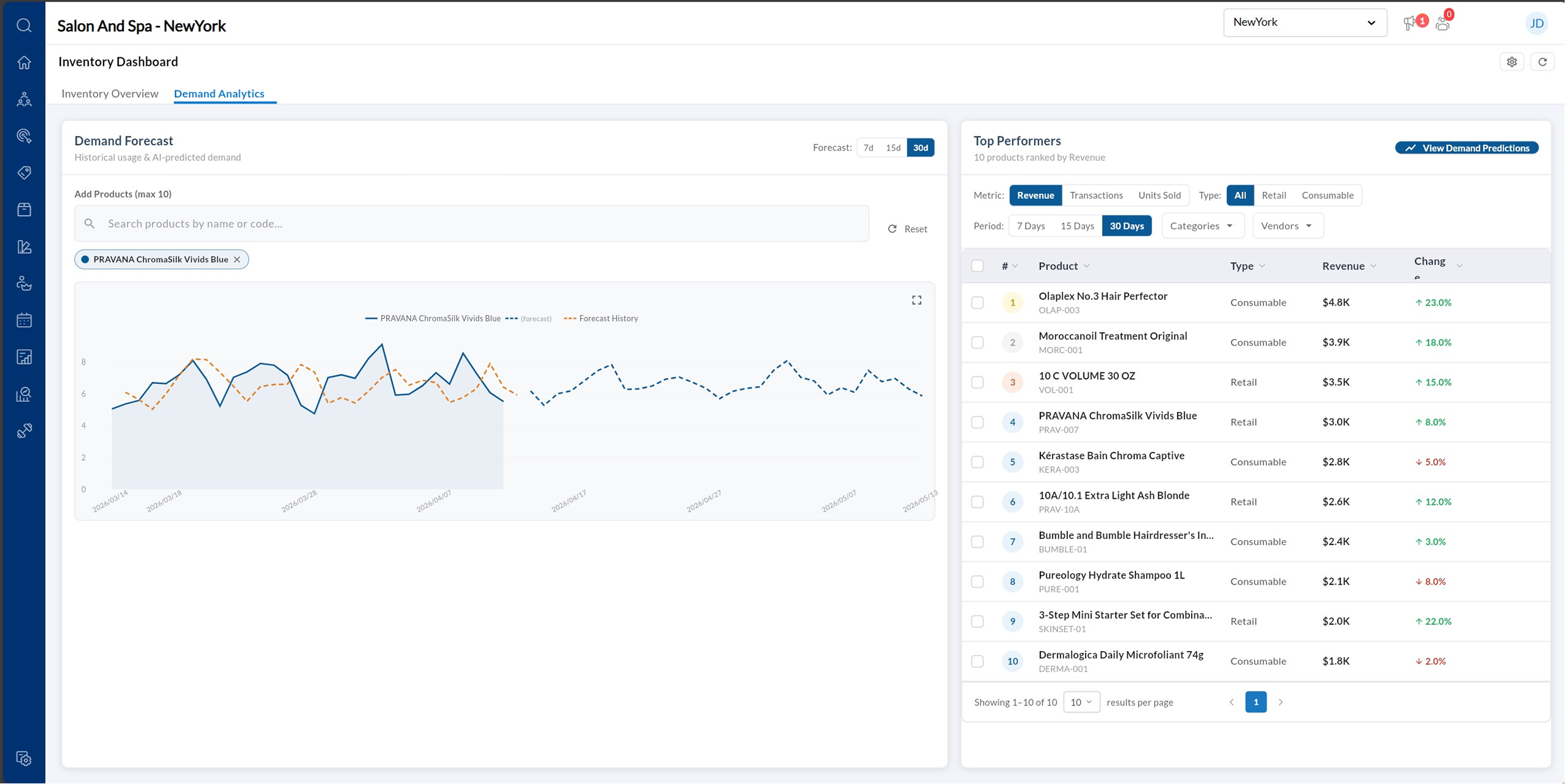 From your appointment book to your retail shelf, from a single location to your entire chain, the entire inventory loop runs inside one platform.