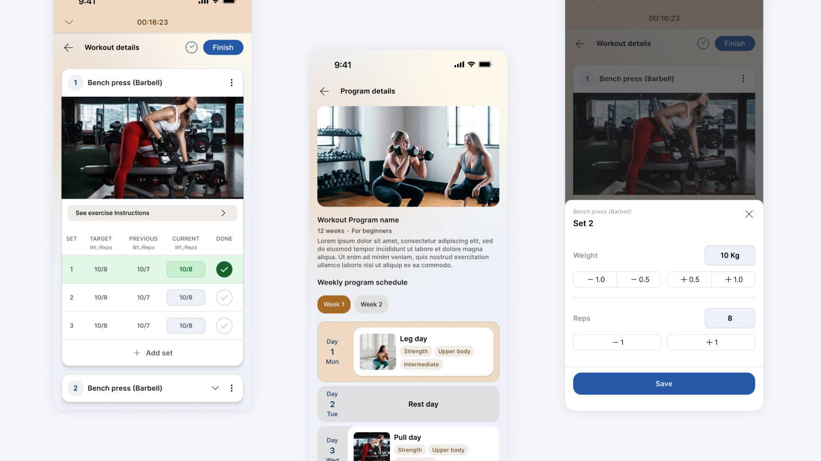 Trainerize's logging screen is its most complained-about feature. We built ours for sweaty hands in a gym — large tap targets, one-tap set completion, and a rest timer that never freezes.