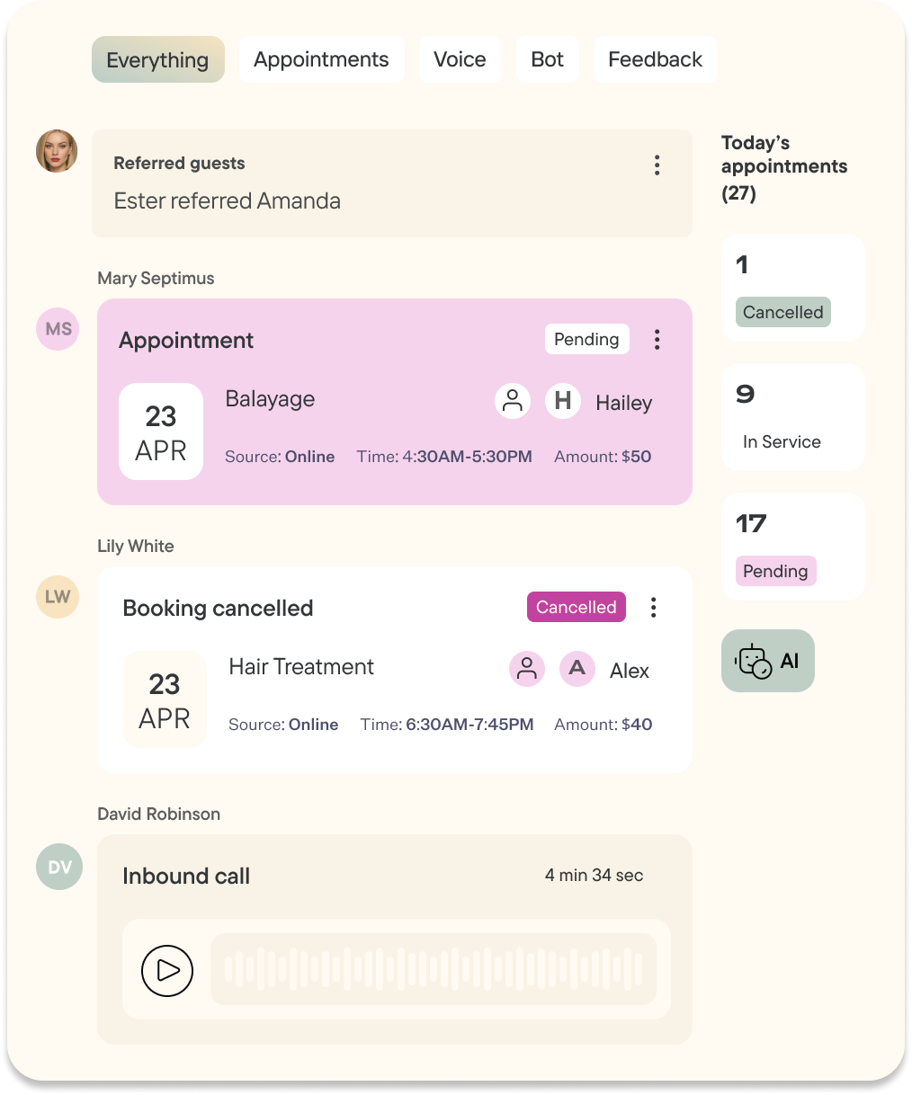 1 in 3 missed calls converts to a booking
