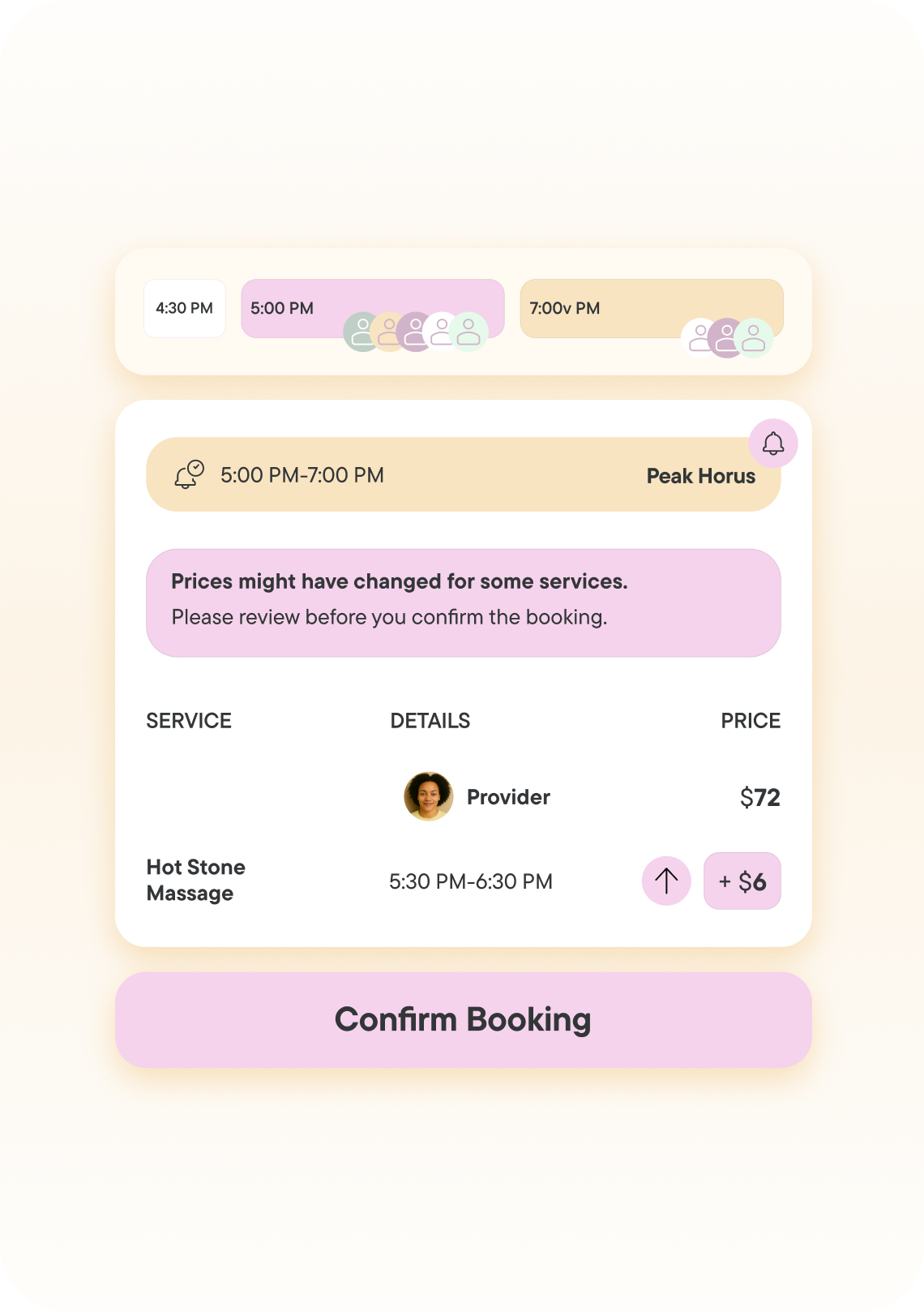 Adjust pricing by peak hours, provider demand, or custom rules.