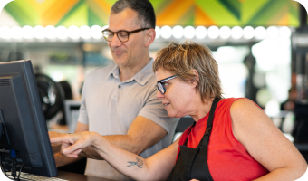 Fast, flexible checkout with kiosk, mobile, and front-desk options.