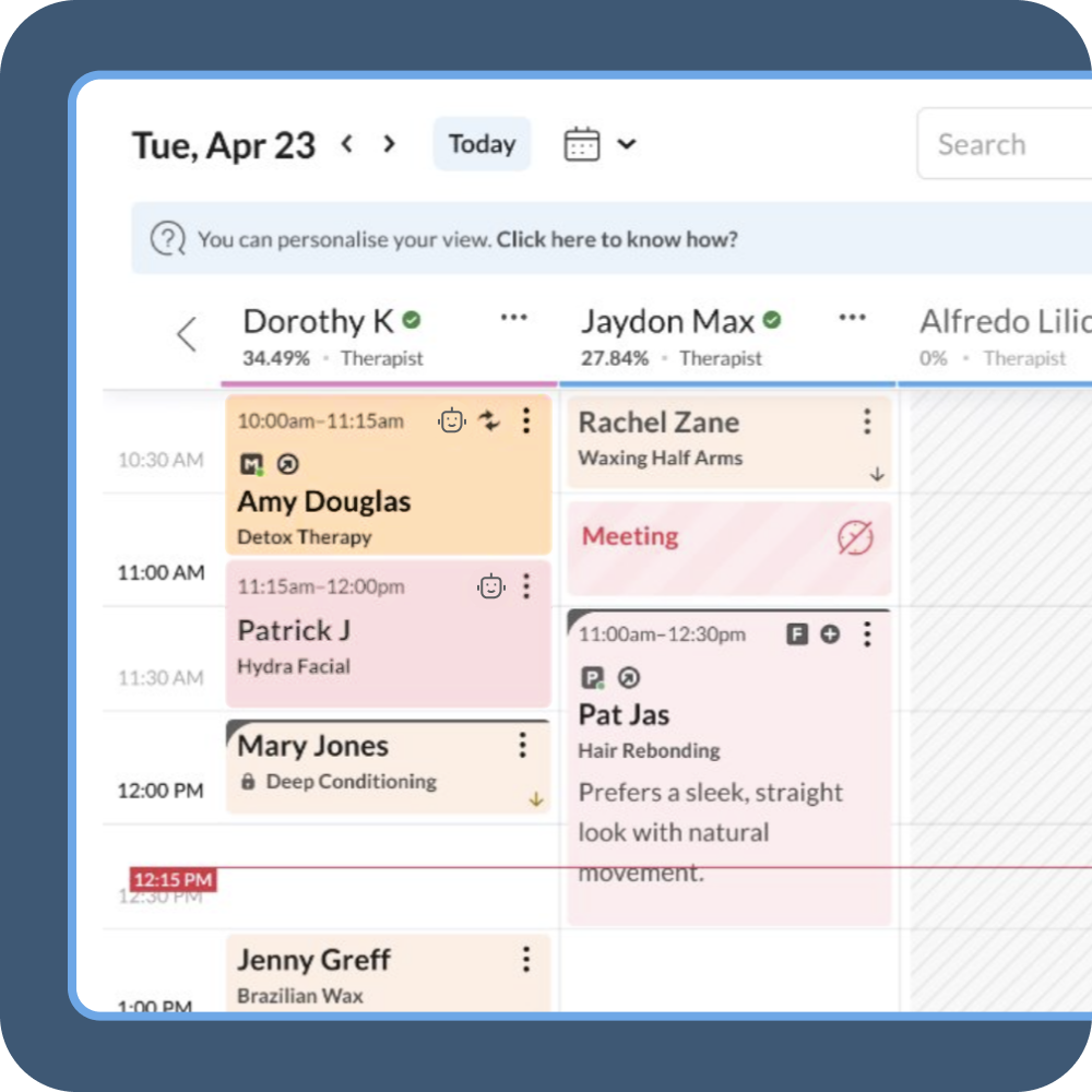 Get Product DemoZenoti’s AI Receptionist is your always-on, AI-powered call answering service. It handles every guest call—booking appointments, answering questions, rescheduling visits, and more—so your team can stay focused on in-center experiences.