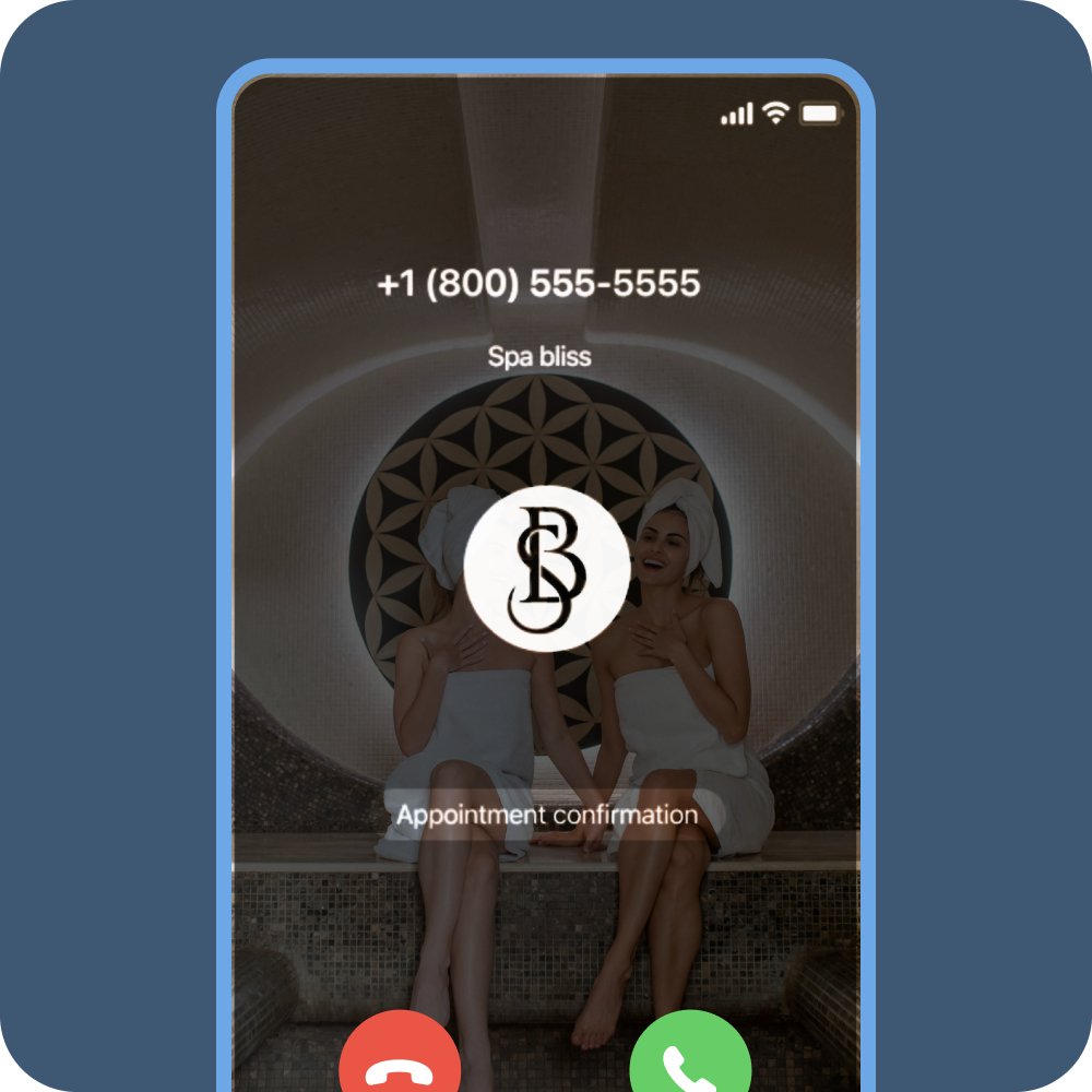 Every call your guests receive shows your business name and logo — no more “unknown numbers.”