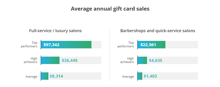 Numbers are even higher for top-performing barbershops and quick-service salons, which saw more than 16 times the annual gift card sales than the industry average.