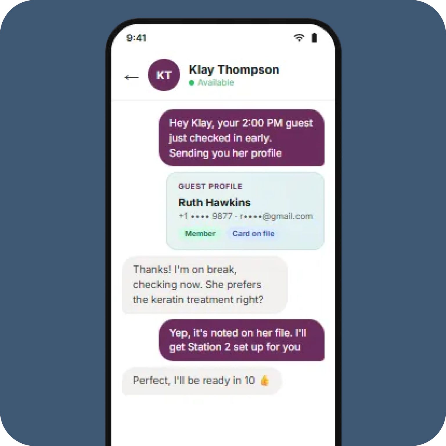 Messages can include appointments, guest details, or invoices, so your team can understand complete context of the work.